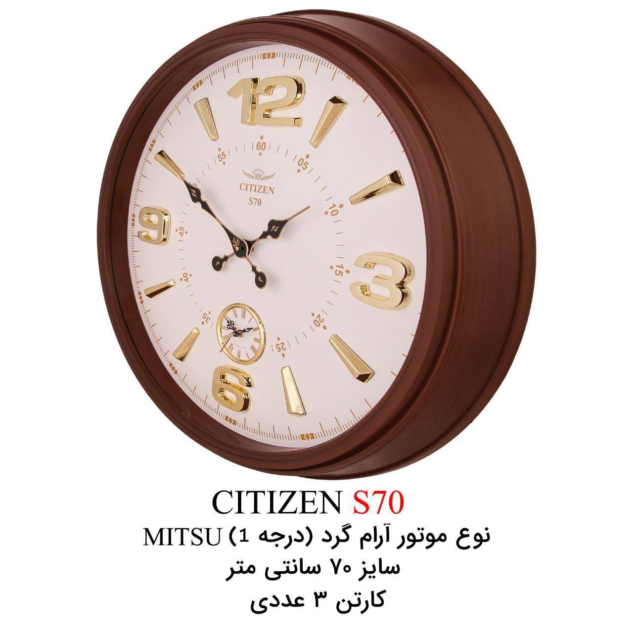 ساعت دیواری سیتیزن اس 70 دارای موتور کاملا بی صدا و طرحی متفاوت از گروه تولیدی پیمان میباشد مناسب برای منزل و محیط کار دارای رنگ بندی با کیفیت بالا و بسته بندی درجه 1