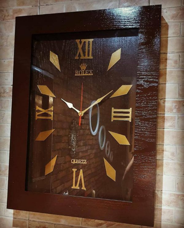 ساعت دیواری رولکس دارای موتور کاملا بی صدا و طرحی متفاوت از گروه تولیدی پیمان میباشد و ایمن محصول صفحه چوبی لیزر خورده میباشد.