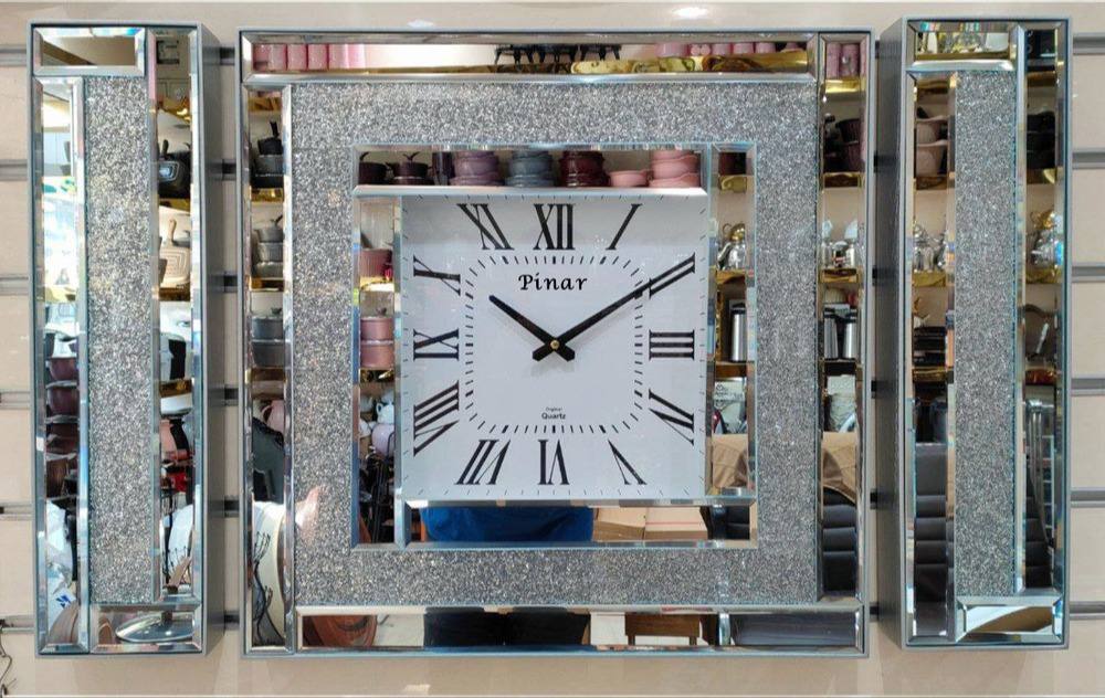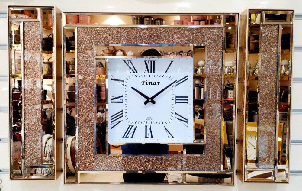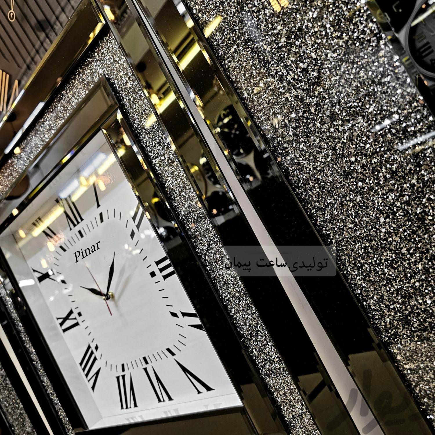 ساعت دیواری آینه ای پینار با 3 سال ضمانت موتور و بی صدا دارای بسته بندی مناسب جهت استفاده در منزل محیط کار